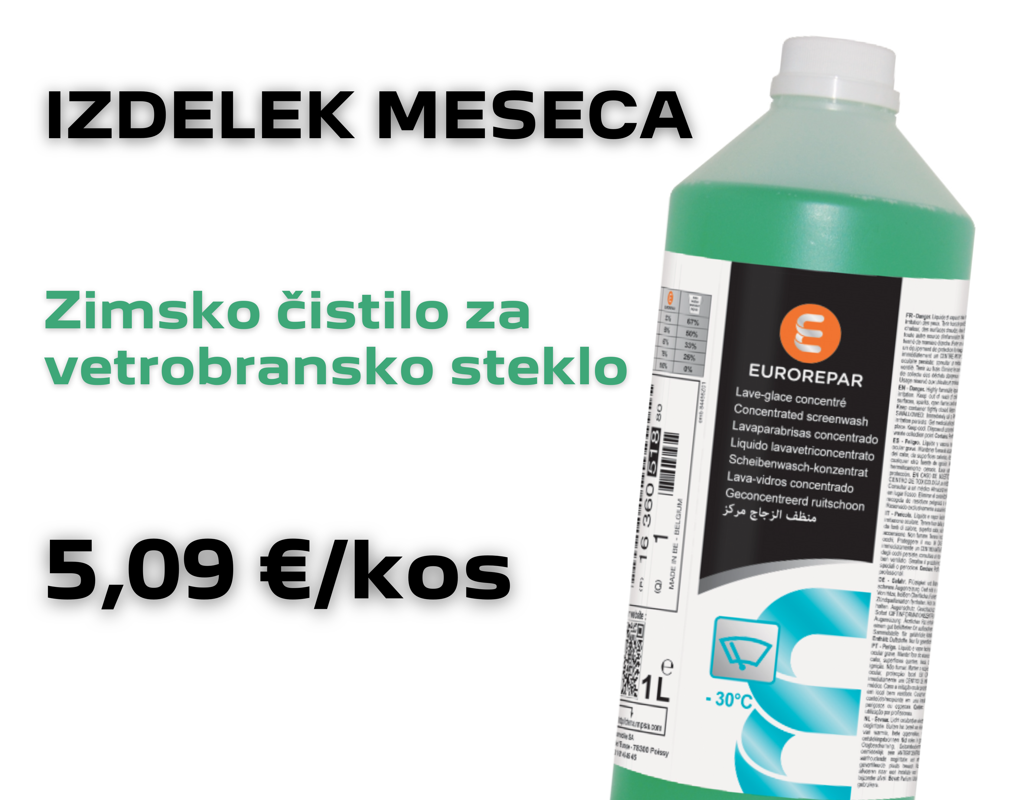 **Kataloška številka izdelka meseca zimsko čistilo za vetrobransko steklo -30°C je 1636051880. Cena izdelka vključuje DDV in velja od 1.12.2025 do 28.02.2026 oz. do razprodaje zalog. Pred koriščenjem ponudbe vam svetujemo, da preverite razpoložljivost izdelkov. Pridržujemo si pravico do morebitnih sprememb in napak v ponudbi. Slika izdelka je simbolična.